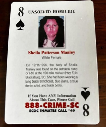 Sheila Manley was found deceased (Murdered) on December 11, 1996, on the entrance ramp of I-85 at the 100-mile marker (Highway 5) in Blacksburg, South Carolina.