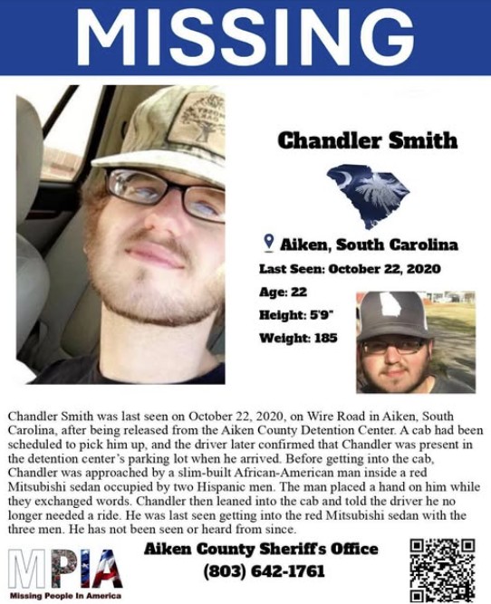 Chandler Smith was last seen in Aiken County, South Carolina, in a parking lot on Wire Road on October 22, 2020, between 2 and 3 p.m. According to NamUs, “a taxi had been sent and when the cab driver got there, he saw Chandler getting into a vehicle with two Hispanic men and a slim-built African-American man.” Smith was 22 years old at the time.