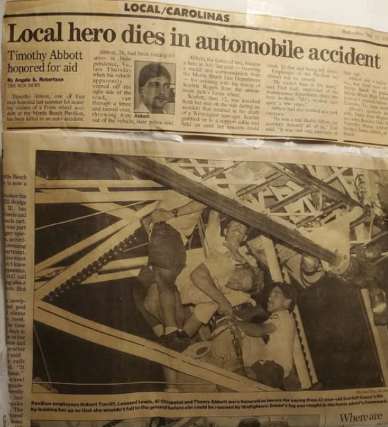 In July of 1991, a tragic accident rocked the Grand Strand when a 12-year-old girl was thrown from her seat on the Ferris wheel at the Myrtle Beach Pavilion. The young girl found herself clinging to a cable more than 30 feet above the ground.