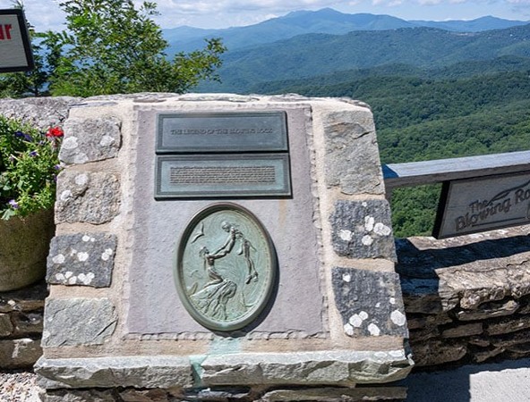 The surrounding mountains have plenty of myths and legends connected to them. Legend of the Blowing Rock is a story of the Chickasaw chieftain’s lovely daughter. He journeyed far from “the plains to bring her to The Blowing Rock and the care of a squaw mother. One day, the maiden, daydreaming on the craggy cliff, spied a Cherokee brave wandering in the wilderness far below and playfully shot an arrow in his direction. The flirtation worked because soon he appeared before her wigwam, courted her with songs of his land, and they became lovers, wandering the pathless woodlands and along the crystal streams. One day, a strange reddening of the sky brought the brave and the maiden to The Blowing Rock. To him, it was a sign of trouble commanding his return to his tribe in the plains. With the maiden’s entreaties not to leave her, the brave, torn by conflict of duty and heart, leaped from The Rock into the wilderness far below. The grief-stricken maiden prayed daily to the Great Spirit until one evening, with a reddening sky, a gust of wind blew her lover back onto The Rock and into her arms. From that day, a perpetual wind has blown up onto The Rock from the valley below. For people of other days, at least, this was explanation enough for The Blowing Rock’s mysterious winds, causing even the snow to fall upside down.”