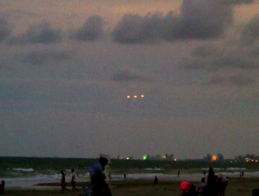 Sometime in the early evening hours, onlookers began noticing lights in the sky over the Atlantic. At first, it appeared as a faint orange-red glow, but after a few minutes, the light grew brighter on the horizon, rotating slowly. Many wondered what the hell it was, but soon, the smaller lights from the craft came into focus, flickering and vanishing, sending people into a frenzy.