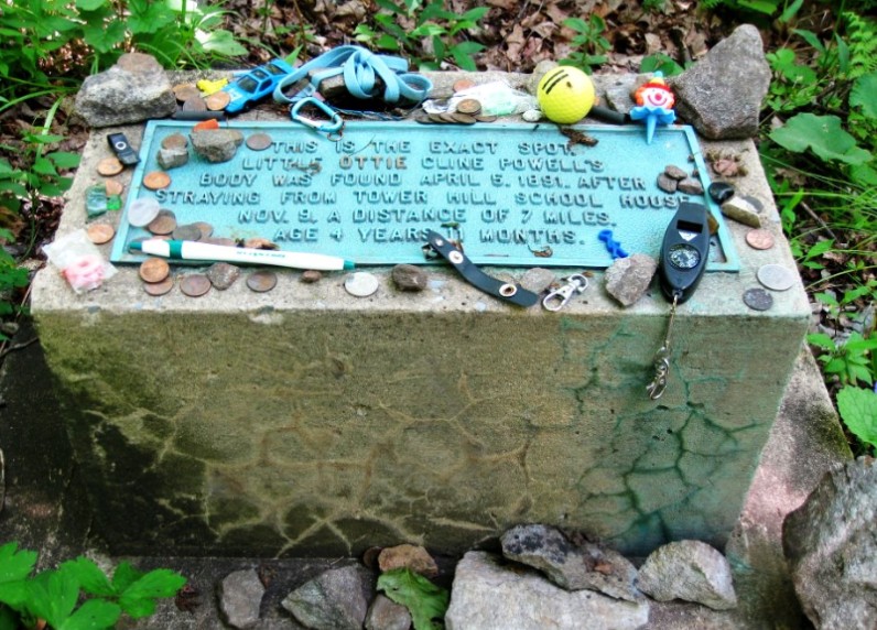 One of the most enduring urban legends of the Appalachian Trail is the story of Ottie Cline Powell, in Lexington, Virginia. Powell was only four years old when, on November 9, 1890, he walked from his one-room school near the Powell farm into the forest near Bluff Mountain to collect fallen branches for kindling for the pot-bellied classroom stove. It seemed winter had arrived early during that fall of that year, when the first snow of the season fell the previous week. Miss Nannie Gilbert was the only teacher, and when the sky clouded on that Monday, she sent her class to fetch more wood.